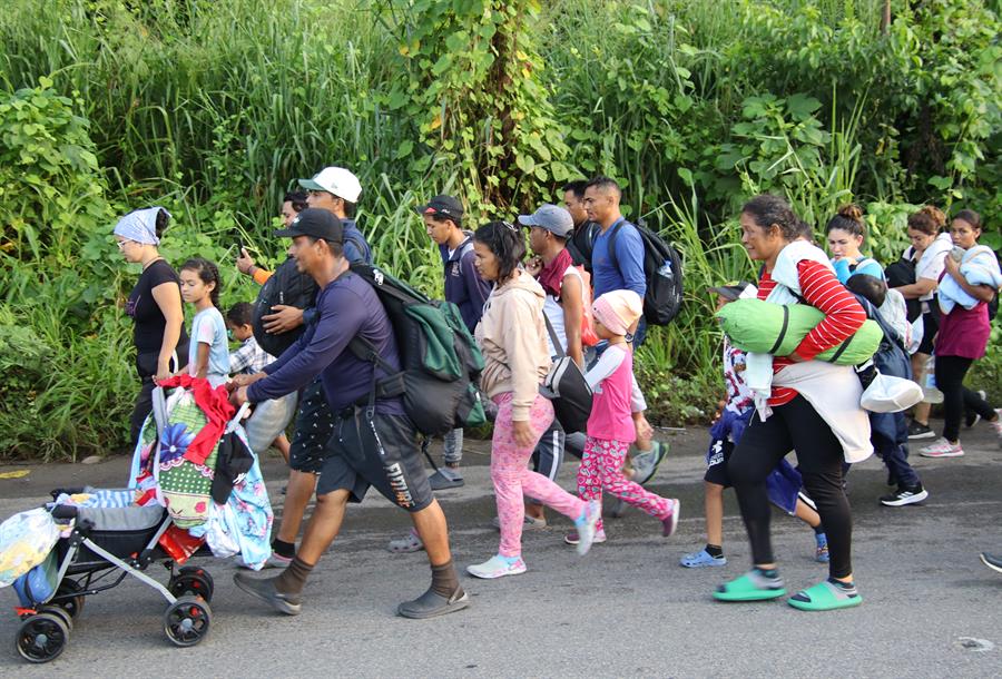DOBLE LLAVE – Un millar de migrantes partieron desde Tapachula, Chiapas, en la frontera sur de México, en una nueva caravana denominada “Dios nos Guía”, con destino a la ciudad de México.