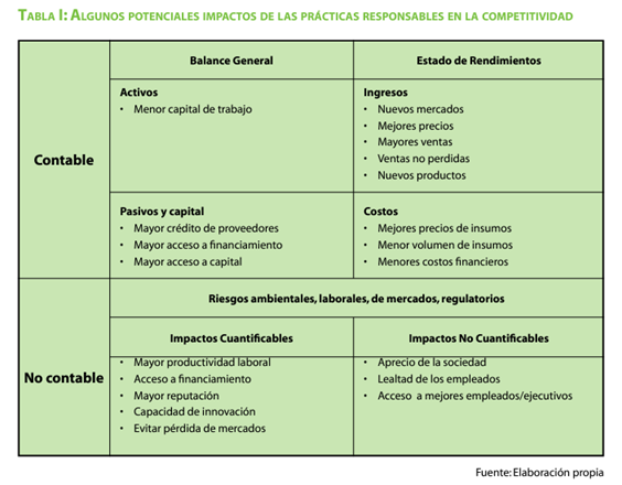 positivo sobre la competitividad, rentabilidad, reputación, y en general sobre