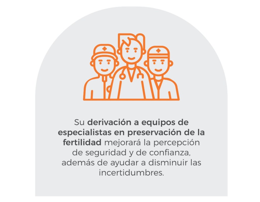 Este documento incide en la importancia de la comunicación médico-paciente ya que las pacientes no solo se enfrentan a la enfermedad, sino también a que sus deseos de ser madres se vean condicionados.