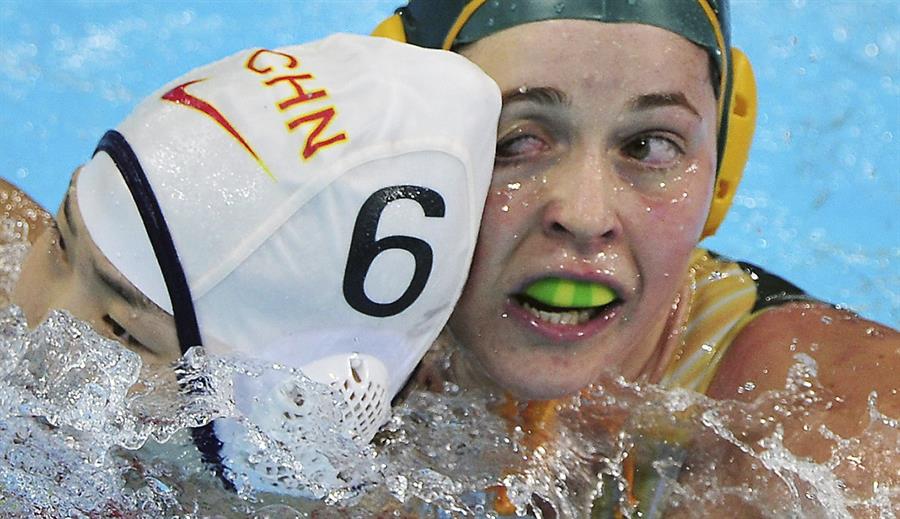 La nadadora australiana Nicola Zagame usando una férula. EFE/Hannibal